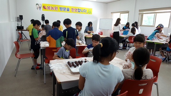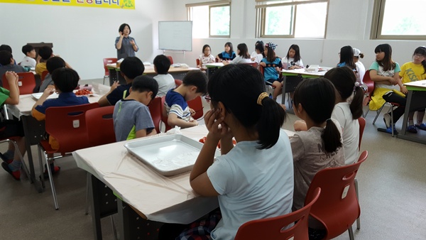 인근 초등학교 5학년 아이들이 체험학습을 왔습니다.