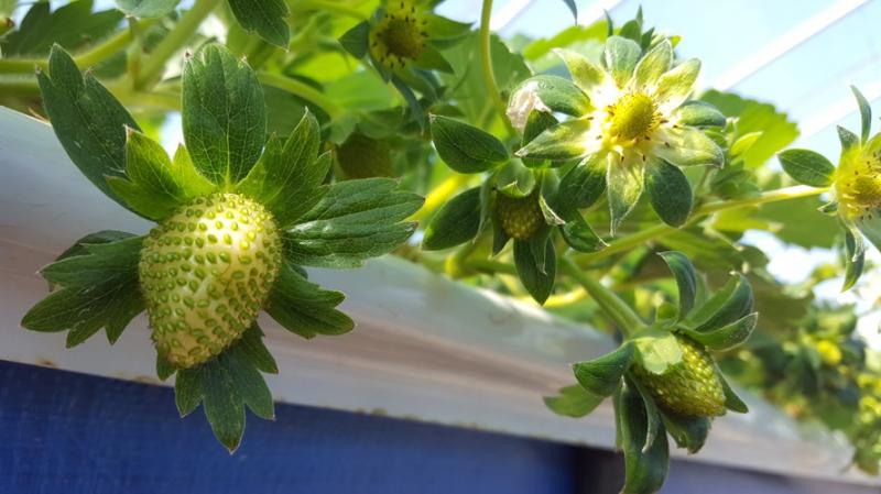 하얀꽃을 피우더니 어느새 딸기가 보이기 시작한다.