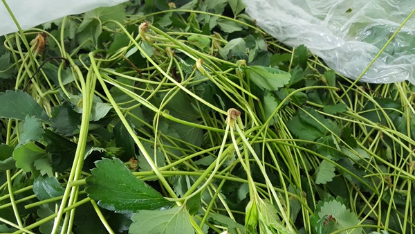 딸기를 넝쿨째로 잘라서 런너를 자르기도 하고