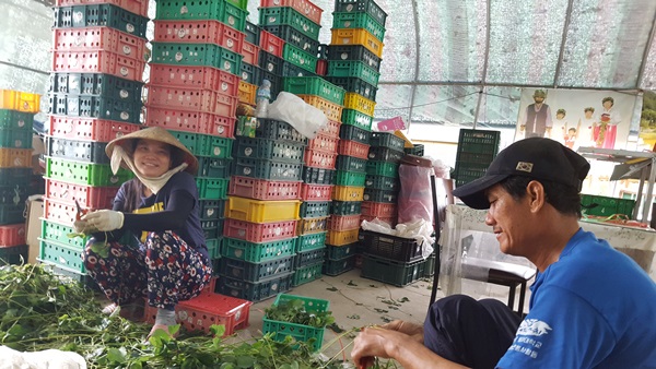 베트남 부부도 열심히 딸기런너 자르기 작업을 하고