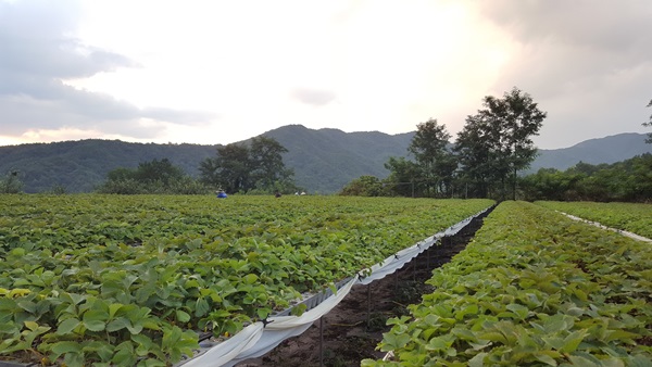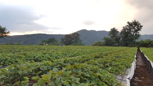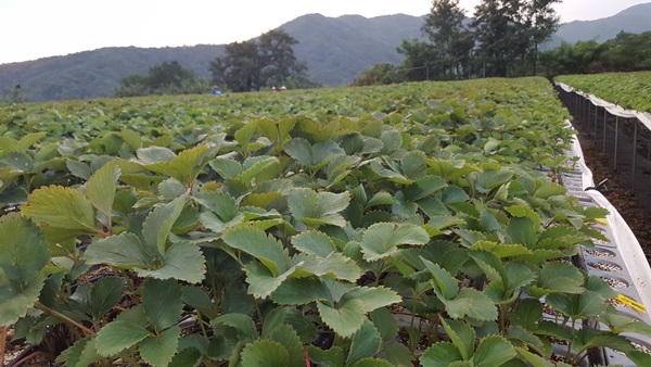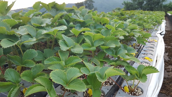 요즘 폭염주의보 속에서도 튼튼하게 딸기모들이 잘 자라고 있습니다.