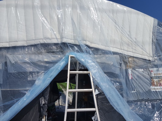 비닐을 모두 씌우고 수선을 하여야 한다.