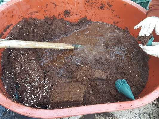 상토에 물을 듬뿍 머금게 해서