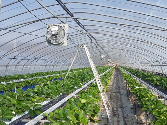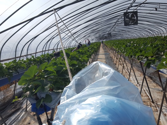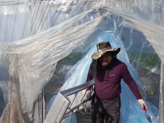 이틀동안 하루에 9동씩 18동 비닐씌우기를 하였습니다.
