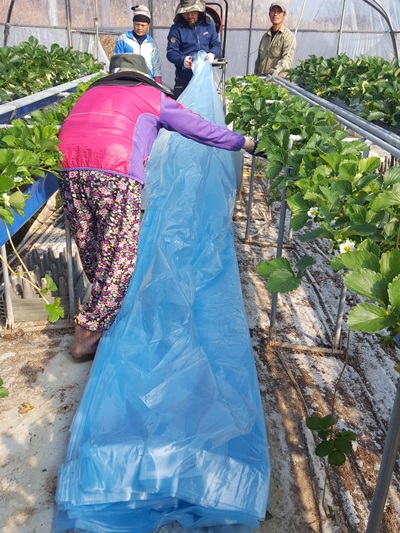 다행히 이틀동안 속비닐 씌우기 18동 무사히 완성하였습니다.