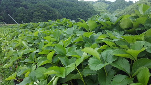 노지에서 건강하게 잘 자라고 있는 딸기모종