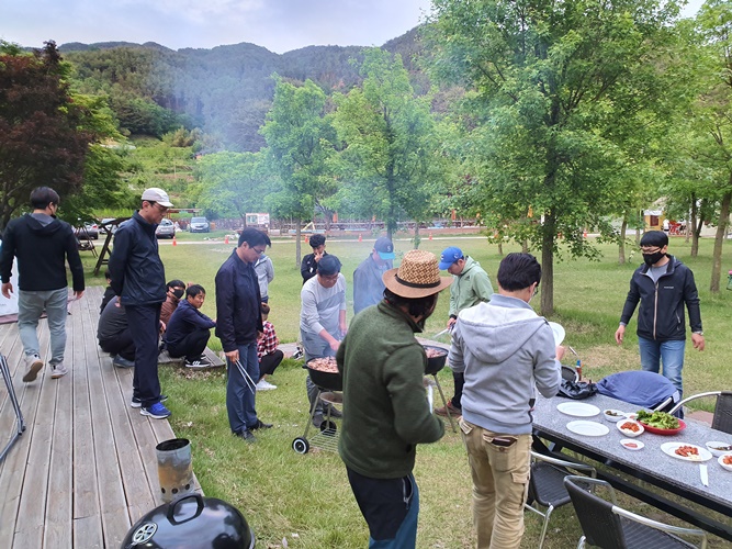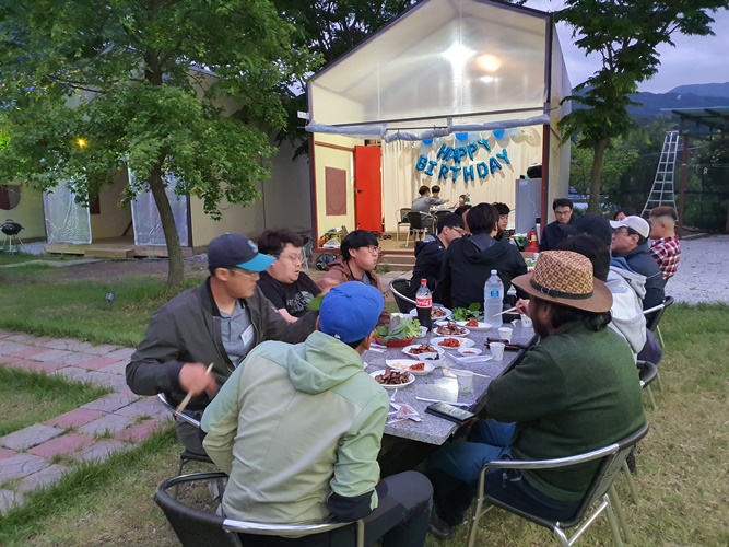 첫날은 야외에서 돼지고기 구워서 먹었습니다.