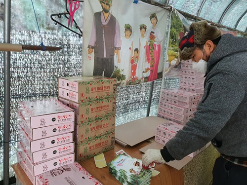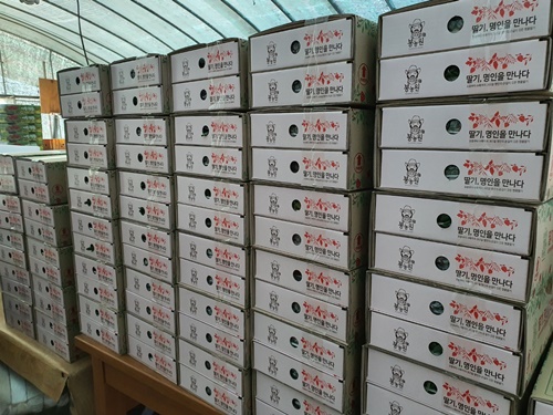 아침부터 딸기택배 포장을 하는 딸기명인 봉농원 주인장님