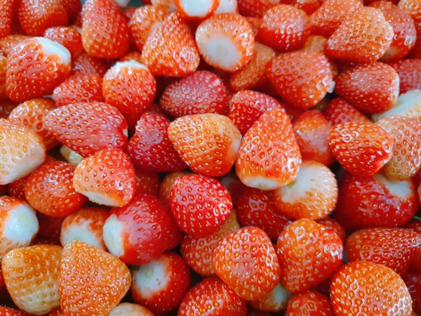새벽일찍 수확한 싱싱한 딸기와 유기농설탕으로 봉농원딸기잼 만들었습니다.새벽부터 수확한 싱싱한 딸기꼭지 제거하고 세척해서유기농설탕과 싱싱한 딸기로 만든 봉농원 딸기잼따뜻할때 쓰으슥 식빵에 발라 먹으면 너무 맛있습니다.딸기씨 씹히는 맛도 너무 좋습니다.봉농원 딸기잼믿고 꾸준히 찾으실수 있도록 최선을 다하겠습니다.