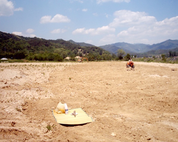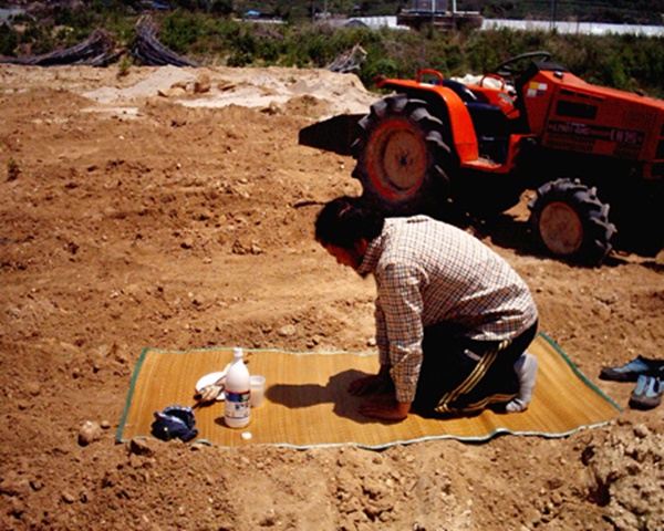 이곳에 딸기하우스를 짓기전 땅에게 고맙다고 예를 올리고.....
