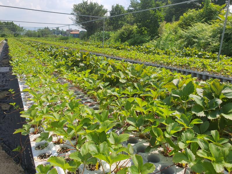 2023년 7월 30일오늘의 딸기모종이 잘자라고 있는 모습입니다.딸기농부는 딸기수확이 끝나도 딸기모종을 키우느라늘 분주하게 움직입니다.올 여름에는 메론농사에도 도전을 하였는데그래서 더 분주하고 바쁜것 같습니다.긴 장마와 폭염에도 노지에서 딸기모종이 튼실하게 잘 자라주고 있습니다.따가운 햇살 아래에서도 잘 견뎌내고 더 강인하게 잘 자라주고 있습니다.튼실하게 자라고 있는 딸기모종들