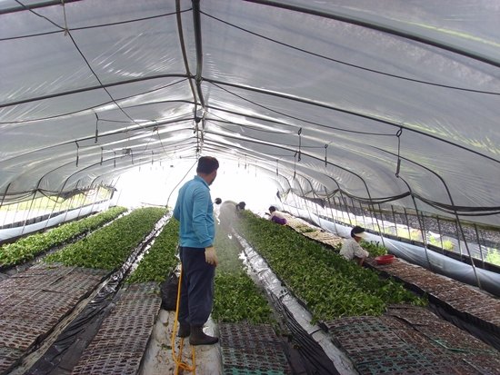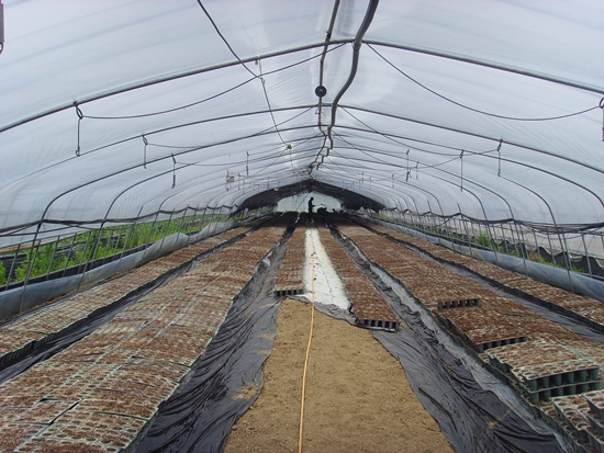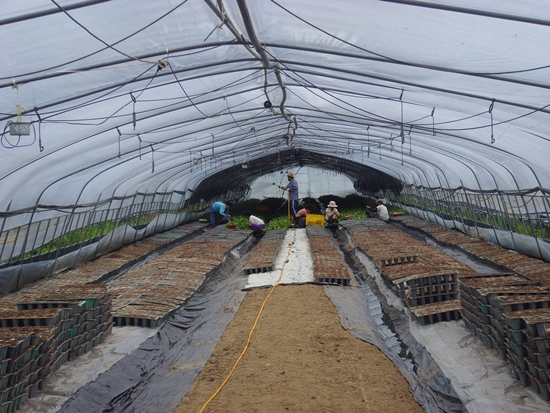 그러면 심는 아주머니들께서는 상토에 딸기모를 핀으로 고정시키는 작업을 하시고