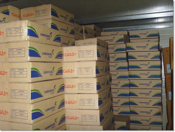 유리병을 담은 박스가 창고를 가득 메우고 있다.