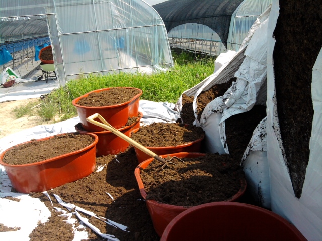 이렇게 큰 다라이에 담아서 하우스 안으로 옮겨가야 합니다.