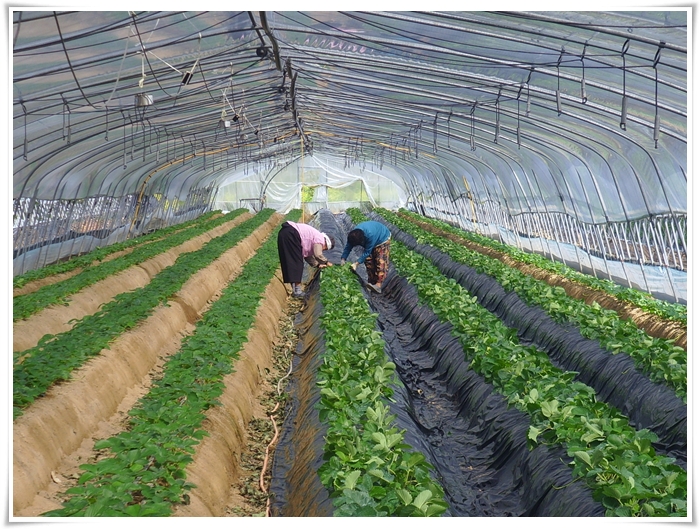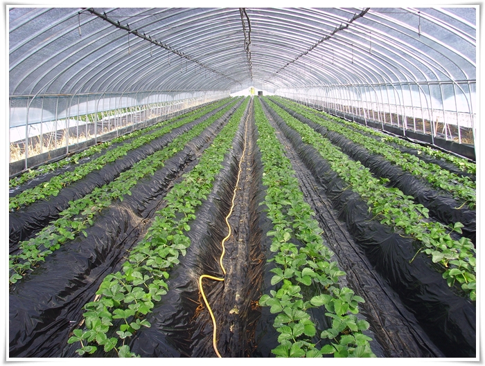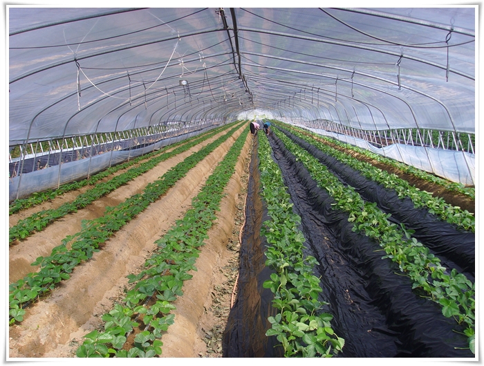 오늘 딸기하우스에 비닐 멀칭을 하였다.