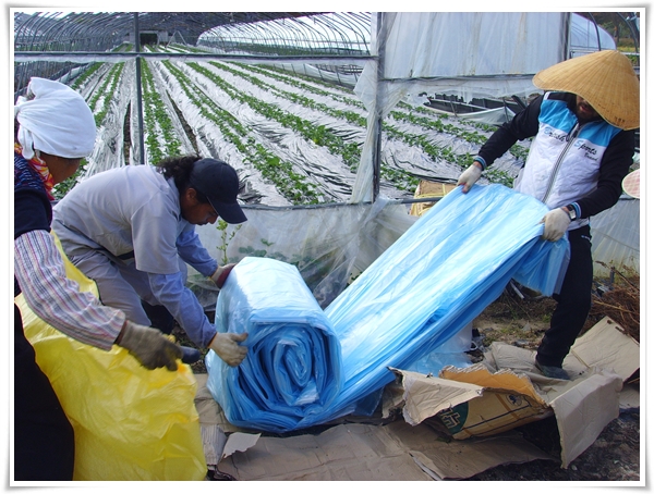 딸기농장의 하우스의 비닐은 이맘때쯤
