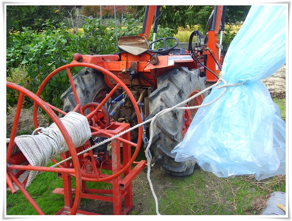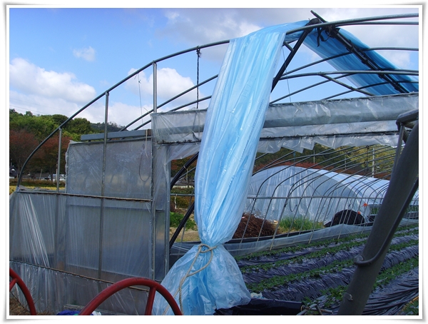 100m길이가 되는 하우스의 비닐을 꺼내서 펴기도 힘이든다.
