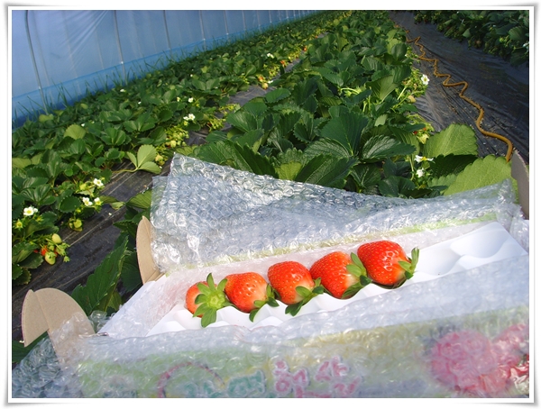 택배보낼 딸기는 이렇게 직접 하우스안에서 따면서 바로 포장을 합니다.