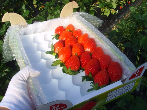 택배 보낼 딸기는 이렇게 직접 바로 따서 담습니다.