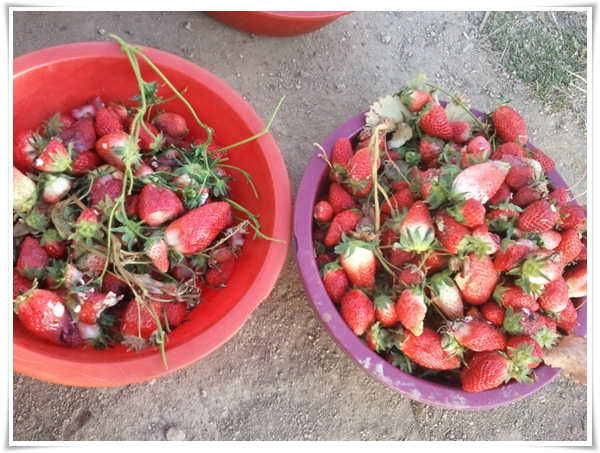 이렇게 모아보면 멀쩡한 딸기들은 왜 따서 바닥에 버리는지???