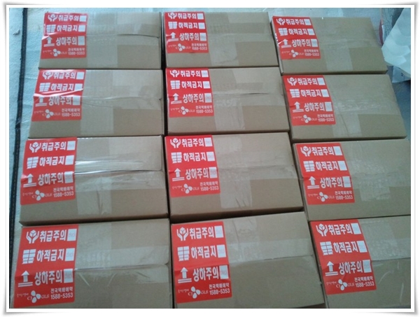 유리상자임을 나타내는 주의표시 스티커도 붙이고..