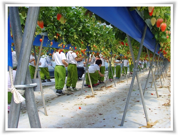 아이들은 그저 공중에 달려있는 딸기들이 신기한가봅니다.