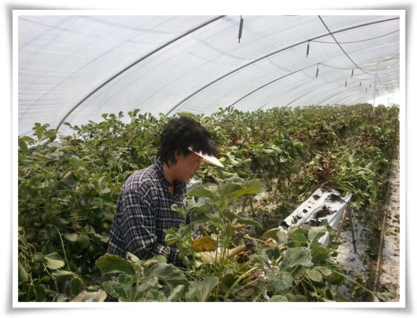싱싱한 딸기를 생산하기 위해 봉농원식구들의 손길은