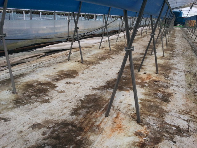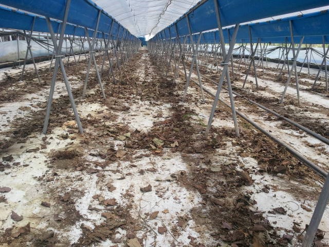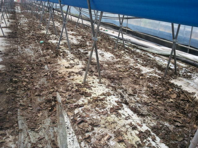 하우스 바닥이 말린 딸기순으로 엉망이 되었다.