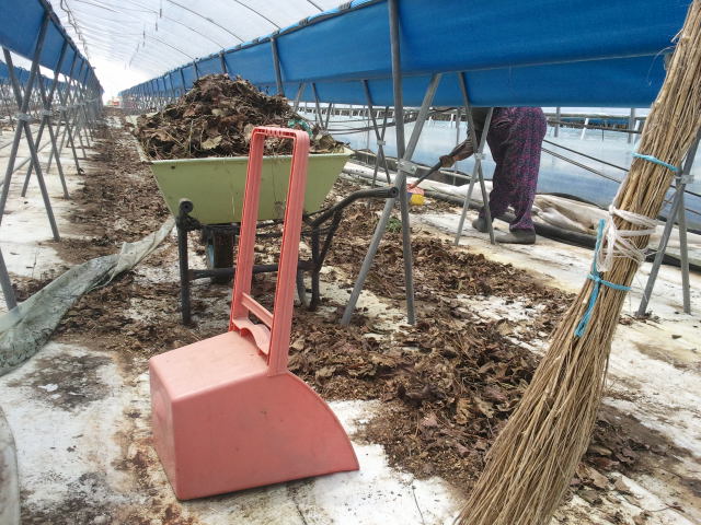 하우스 안에서 말린 딸기순을 걷어내고 나니