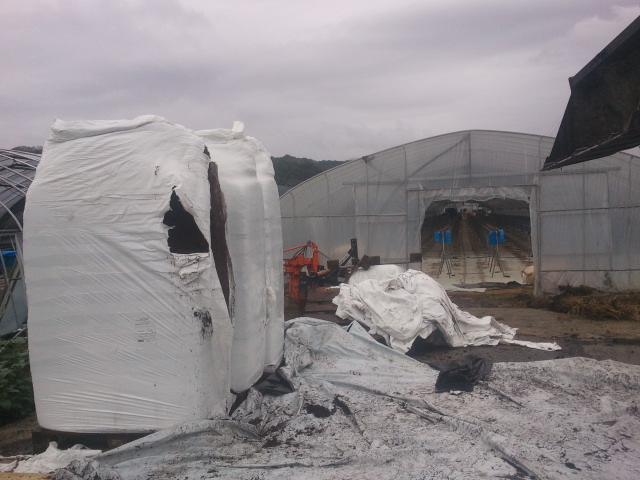 아직 토양으로 딸기재배를 하는 하우스 정리 작업이 남아있지만