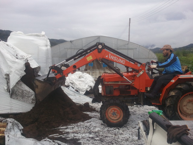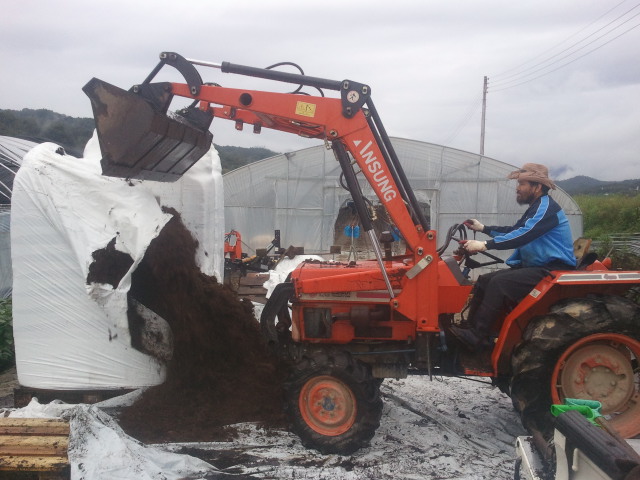 이렇게 트랙터를 이용해서..... 상토를 부숴야한다.