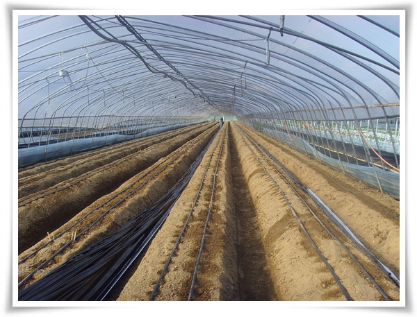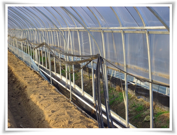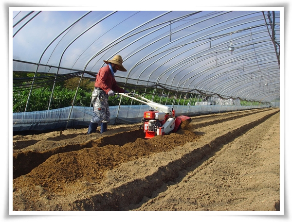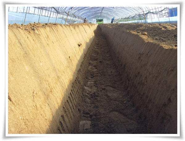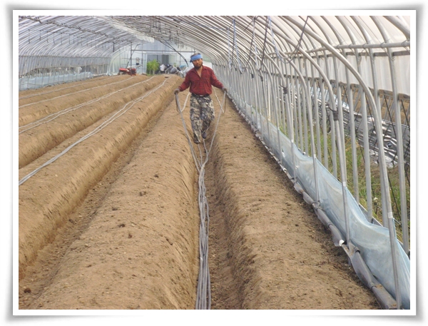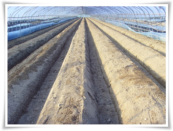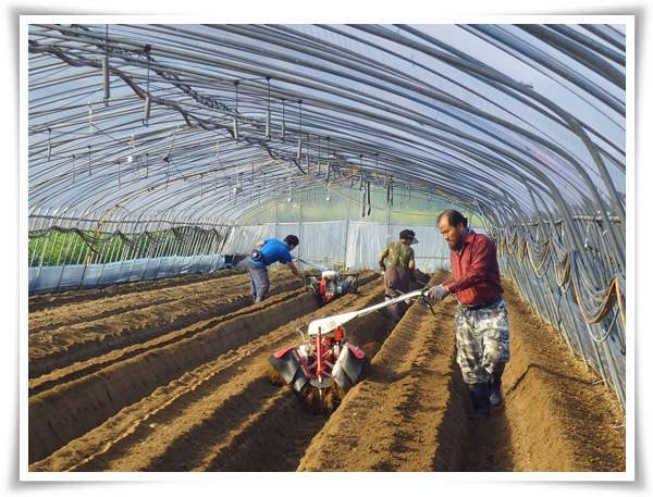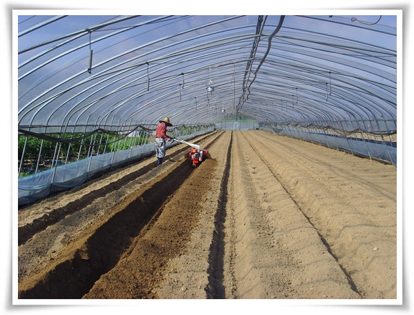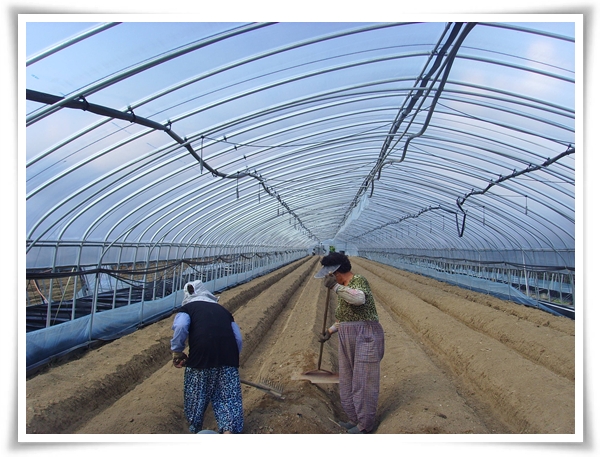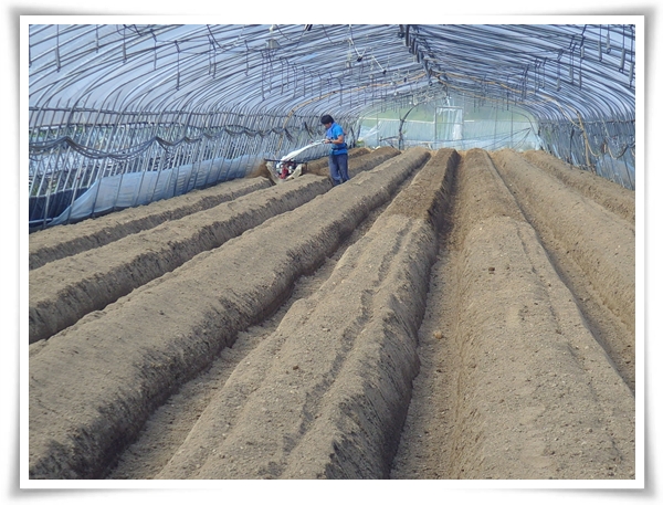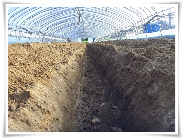 며칠전에 퇴비를 듬뿍 놓은 하우스에 두둑을 짓기 시작합니다.