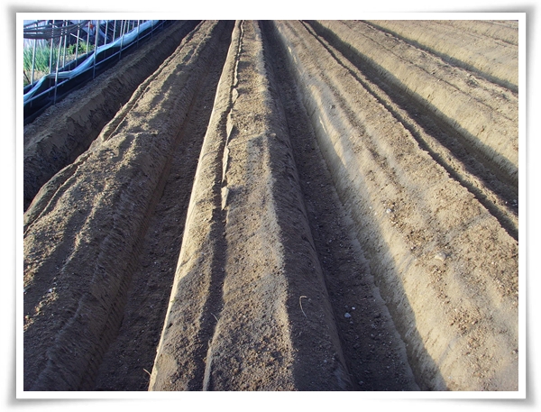 두둑위에 올려놓은 줄은 나란히 적당한 거리를 두고 벌려서