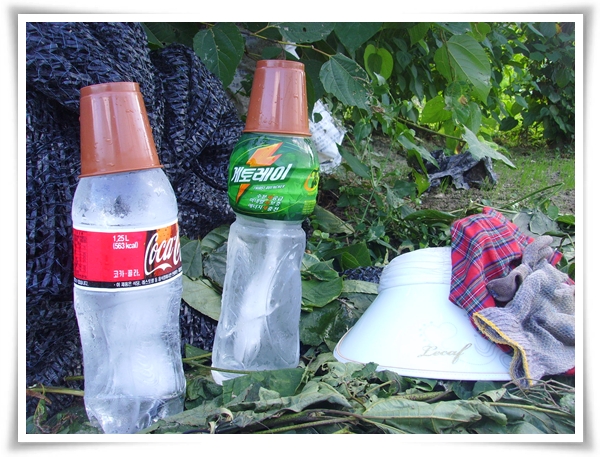 하우스 밖에는 이렇게 꽁꽁 얼린 얼음물이 항상 대기중입니다.