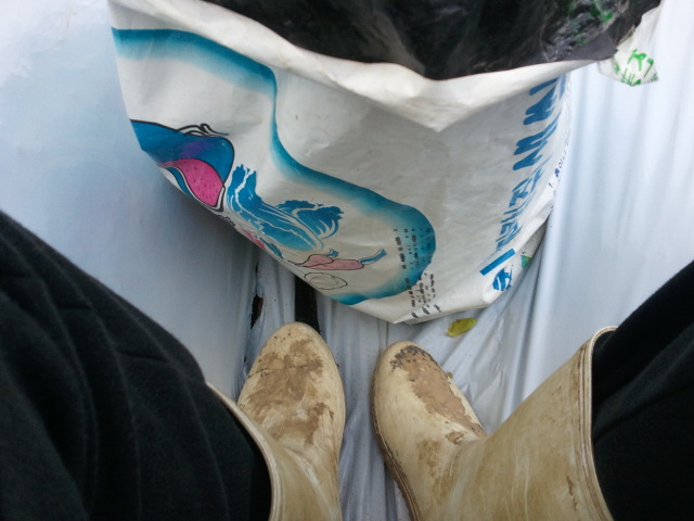 비록 몸은 힘들지만 흙묻은 장화를 신고