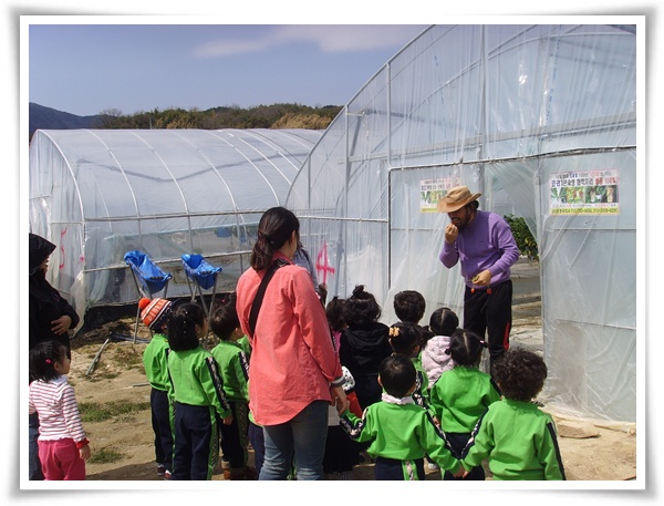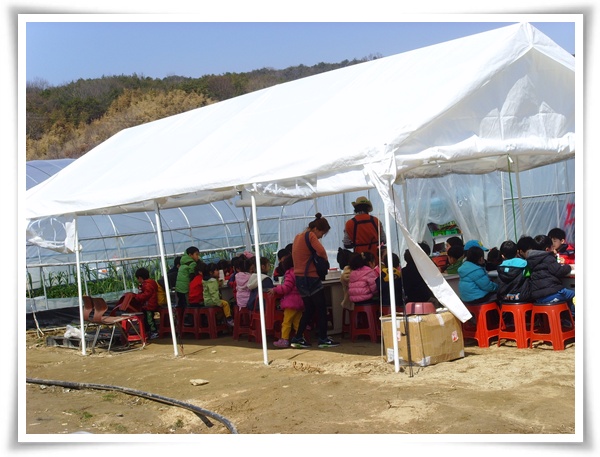 딸기하우스에 들어가기전 고맙게도 아이들이 저를 향해 포즈를 잡아주네요..