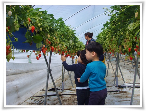 아이들 눈높이에 딸기가 달려있으니