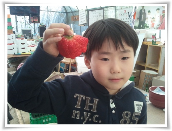 딸기체험 마지막날....이 아이......이게 뭔미?????