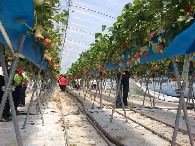 딸기하우스에 들어가면 일단 눈앞에 맛있는 딸기의 유혹을
