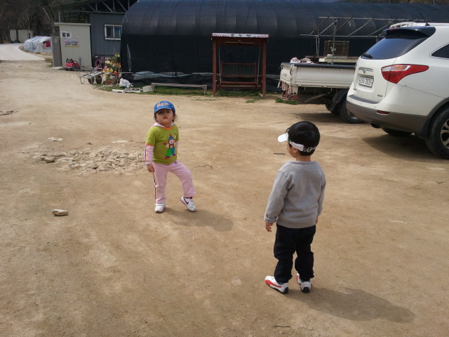 딸기하우스안으로 들어가고 있는 천사들...