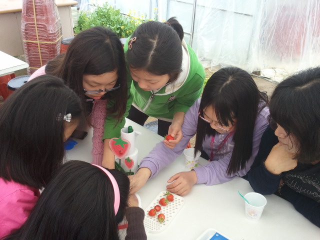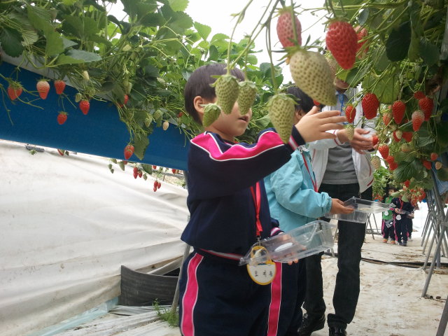 열심히 딸기를 따고 있습니다.