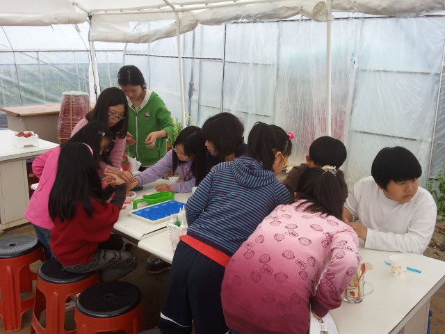 김천에 있는 초등학교 병설유치원에서 아이들이 체험을 왔습니다.