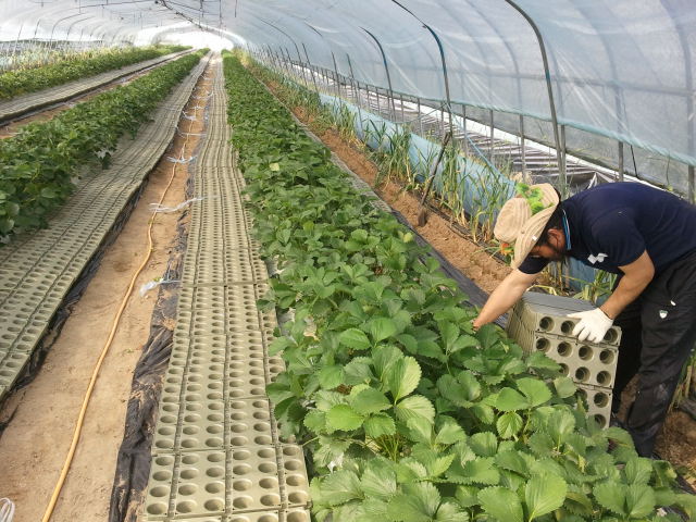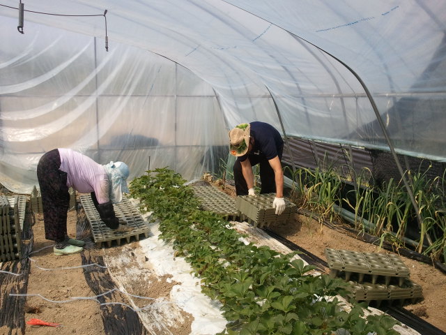 그래도 딸기모종을 받기 위해 저희들은 비닐하우스 안에서 작업을 하였습니다.