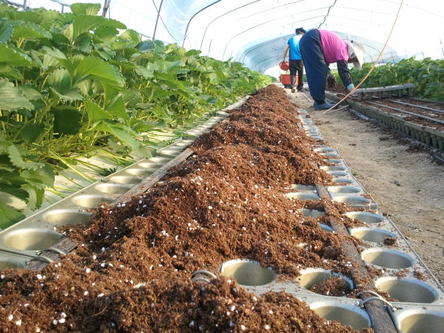 딸기수확이 끝나기도 전에 딸기모종을 키워야 하는것 보이시죠??