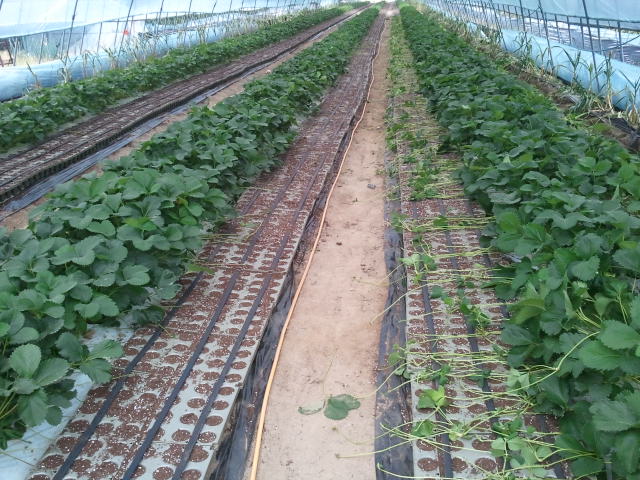 포트를 다 깔고나면 이렇게 딸기모들 사이에 올려놓았던