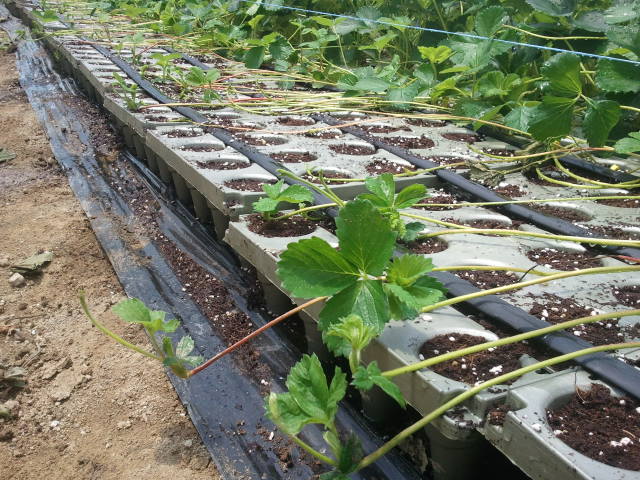 깔아놓은 모판에 딸기런너가 다 꽂을때까지 계속 꽂아주어야 합니다.