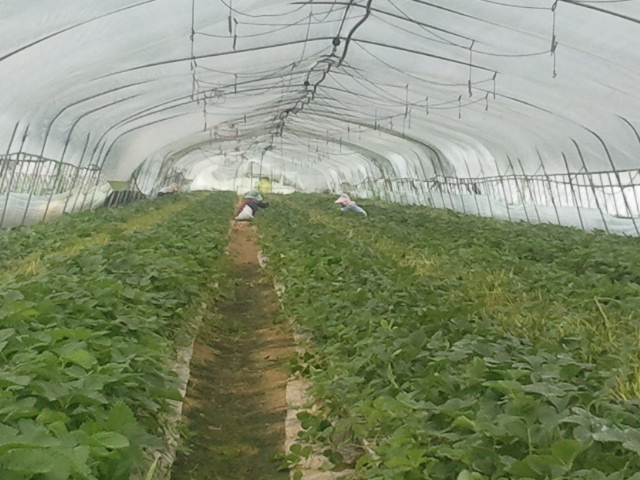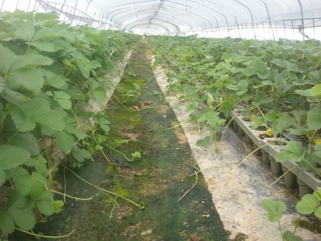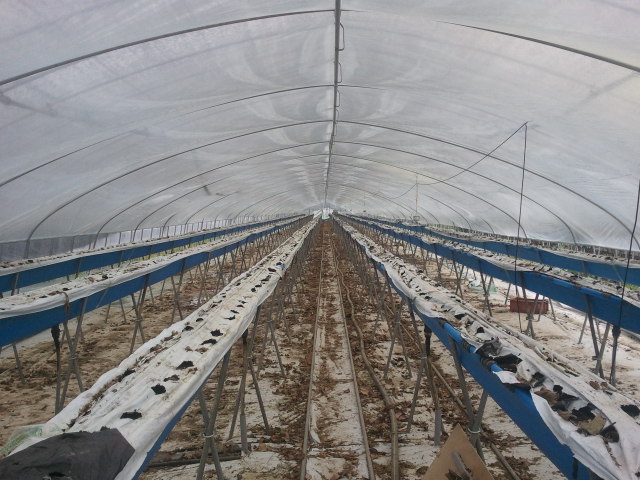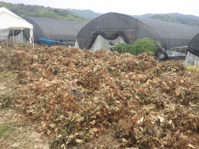 다른 하우스에서는 이렇게 며칠전에 잘라놓은 딸기모주들을 들어내고 있다.