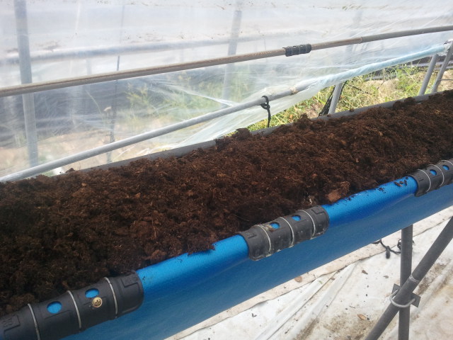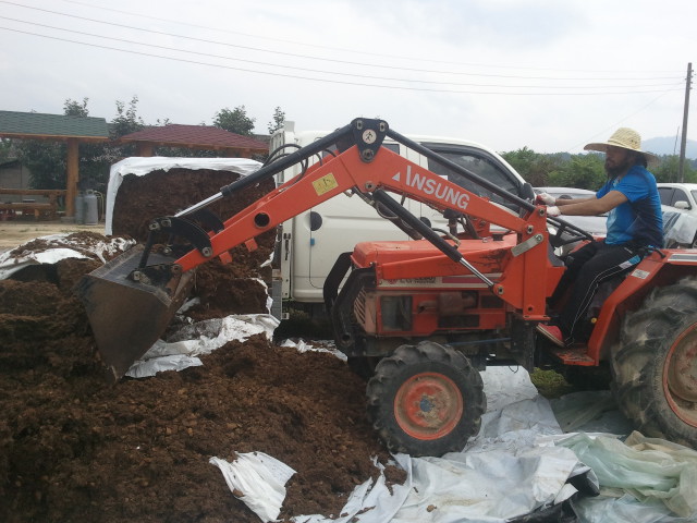 네델란드에서 가져오는 상토를 잘게 부수고 있다.