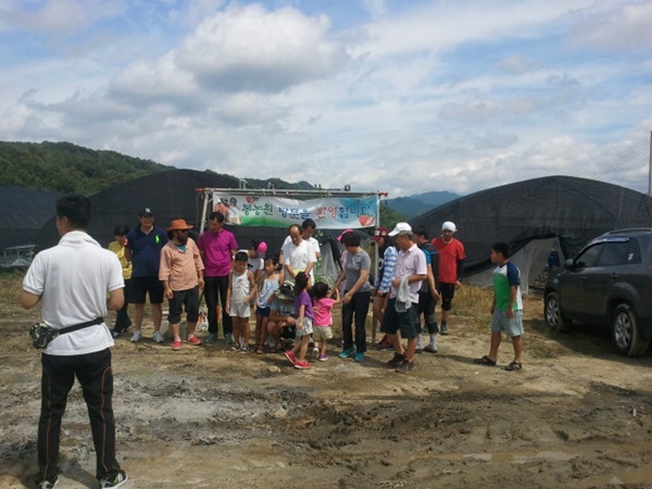 거창농업기술센터 정갑수계장님께서 예비귀농인들을 모시고 저희 농장으로 오셨습니다.