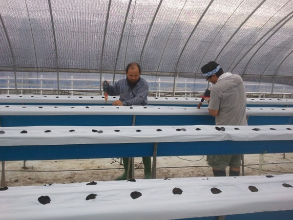 딸기를 고설재배시설로 3동을 만들어놓았다.